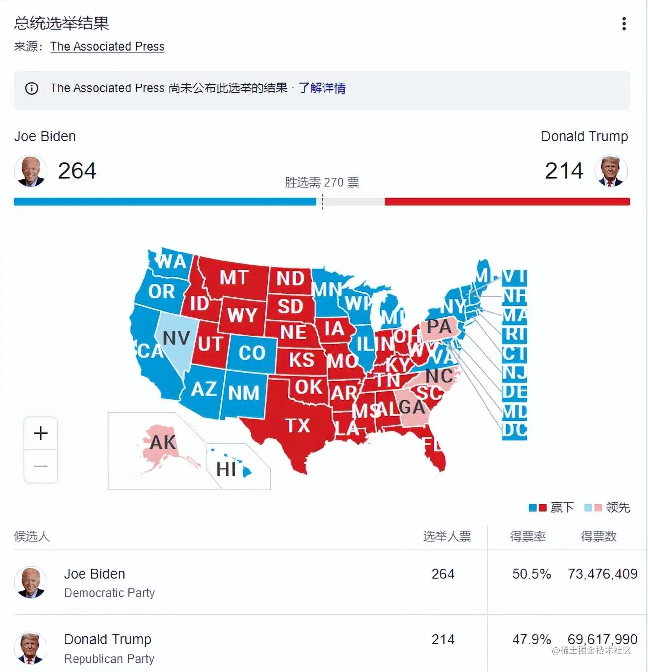 在很多可视化作品中,政党、国家、心情等都会有常用的颜色编码。在大选时,特朗普是红党,红色是共和党的颜色,他一直带着红色领带。蓝色是民主党的颜色,所以,拜登一直带着蓝色的领导,摇摆地区的颜色是黄色