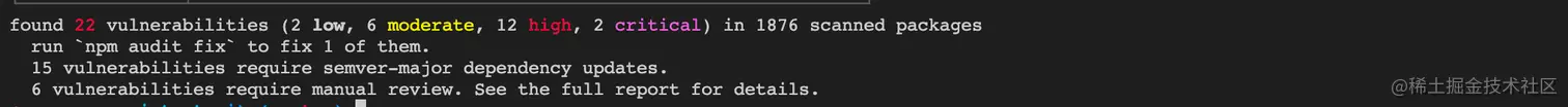 npm audit fix --force 强制修复漏洞