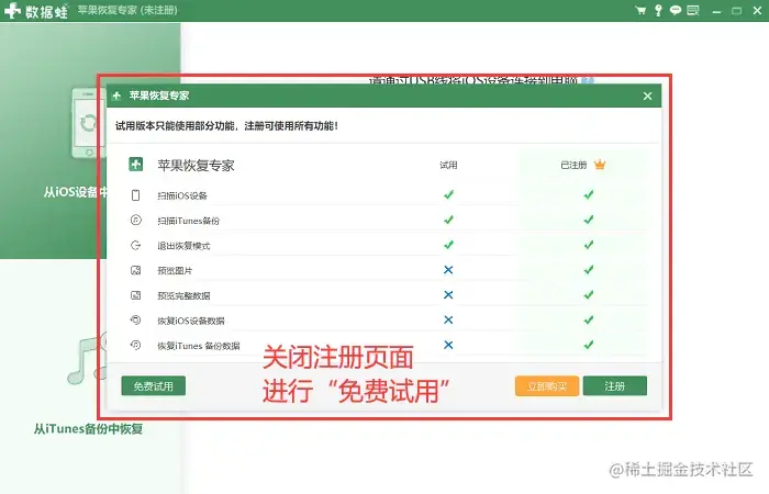 第2步:关闭弹出的**【注册页面】,建议新用户先尝试【免费试用】**;