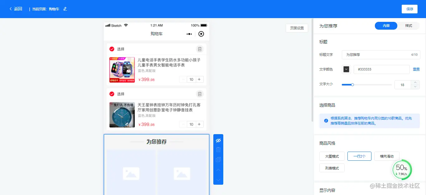 设置是否显示“为您推荐”商品,“为您推荐”的内容、样式设置