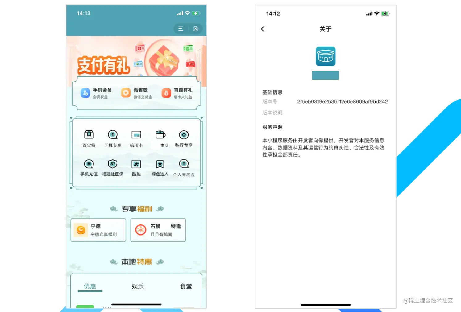 从技术上来讲,小程序可以简单、独立进行开发,在管理后台以上下架的形式直接发布,支持在不更新 App 的情况下实现热更新,能够解决线上手机银行 App 发版流程长且复杂等问题,快速响应业务需求。