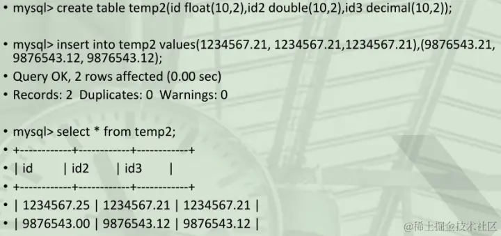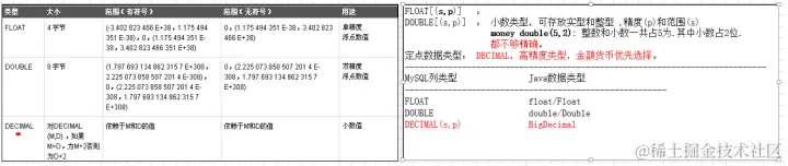 注:float 和 double 类型会存在不够精确的问题,高精度要求建议使用 decimal 类型,可能会出现下图现象: