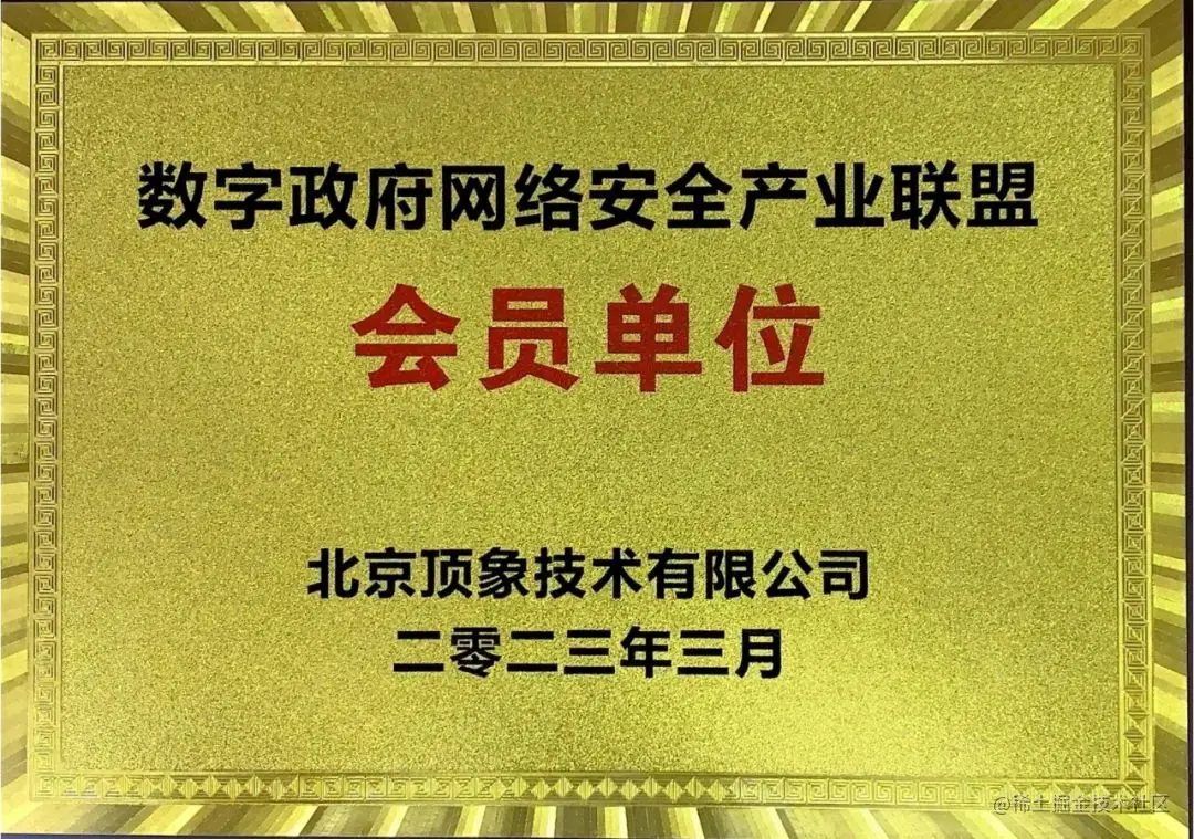 近日,顶象收到“数字政府网络安全产业联盟”颁发的会员牌匾,标志着顶象正式成为该联盟会员,共同推动数字政府网络安全产业的健康发展。