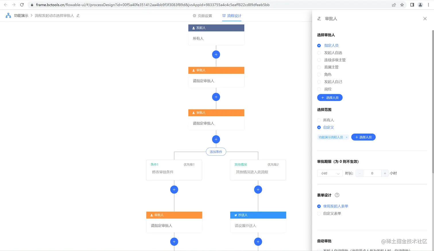 Activiti、flowable需要技术人员去完成业务对接,jvs-flow只需要在界面上快速配置即可,使用门槛较低。