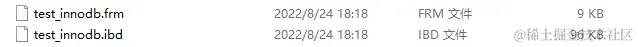 在 InnoDB 中,数据和索引文件是合起来储存的,注意下图中没有了.MYI 结尾的文件,只有一个.ibd 结尾的文件。
