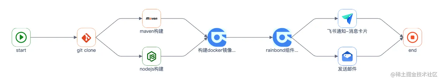 下图是最终要实现的效果,也是建木的图形化流水线配置,本文将以下图的流程为例进行介绍: