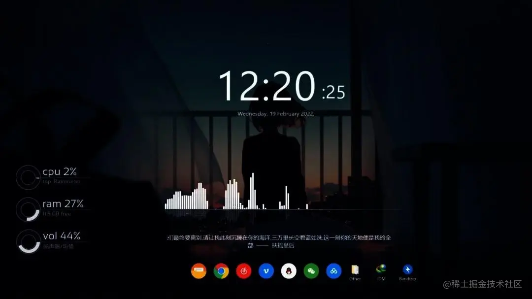 Rainmeter是一款桌面美化软件,可以让你在桌面上显示各种自定义的皮肤,如时钟、天气、音乐播放器、系统监视器等。你可以从网上下载各种风格的皮肤,也可以自己制作和修改。这款软件可以让你的桌面变得更加个性化和动态。