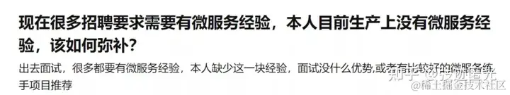 所以我们在工作之余,一定要主动去学习新的技术,尤其主流的、先进的,大厂都在用的,比如微服务,哪怕你平常工作中用不到,也应该了解它的架构系统如何实现、为什么这么火。更别提,现在出去面试,不管公司用不用得到,都一定会问微服务相关。