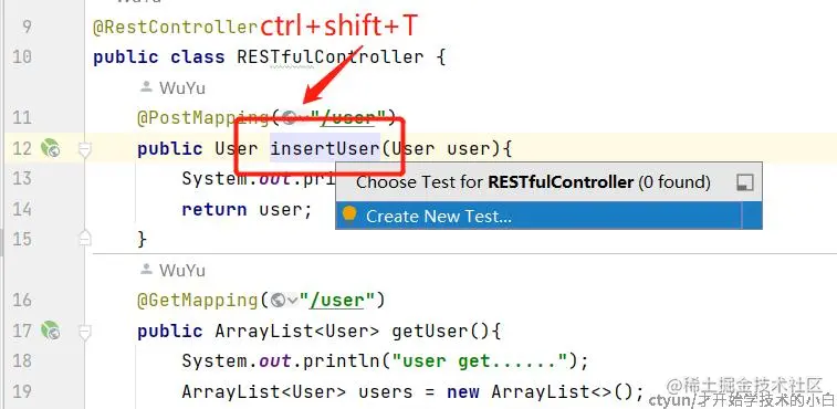 如果你使用的IDE和我一样,是IDEA,那么你可以通过在需要写单元测试的方法上Ctrl+Shift+T来快捷创建