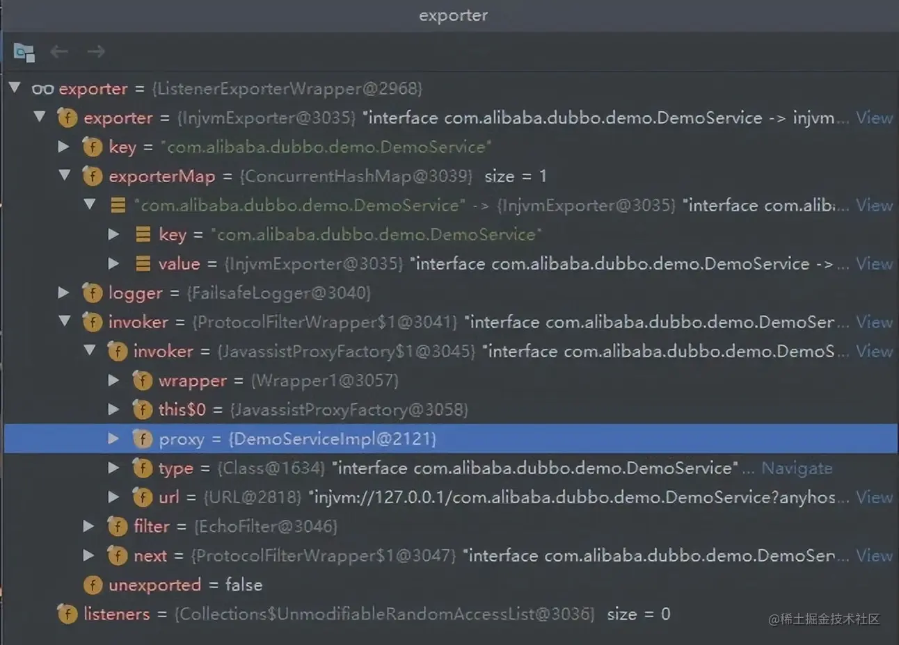 可以看到exporter中主要包含了一个invoker,而invoker中持有一个被代理对象。