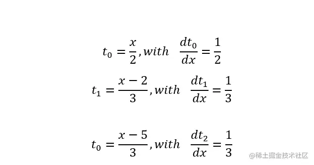 将 t 与原始 x 坐标相关联。 导数表示当我们在 x 方向上移动时每个 t 变化的速度。