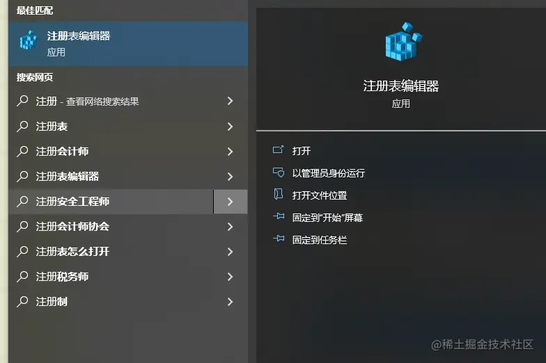 3)然后打开注册表编辑器: