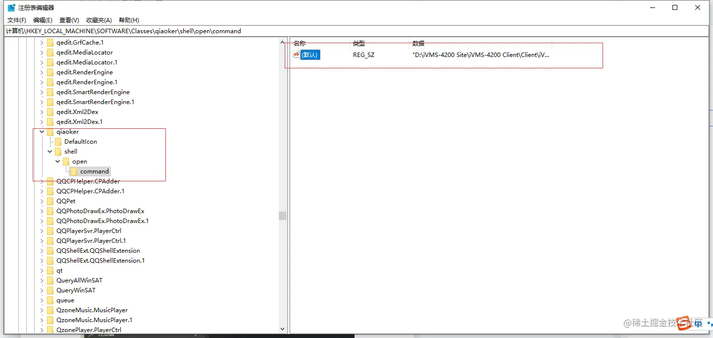 其中:“D:\iVMS-4200 Site\iVMS-4200 Client\Client\iVMS-4200.Framework.C.exe” %1,这个路径为打开应用的路径: