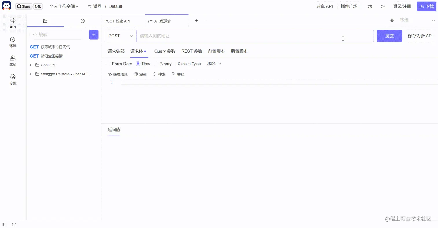 Postcat 是开源的 API 管理工具,有 API 相关的核心功能,还有丰富的插件广场,帮你快速地完成 API 的发布和测试功能。