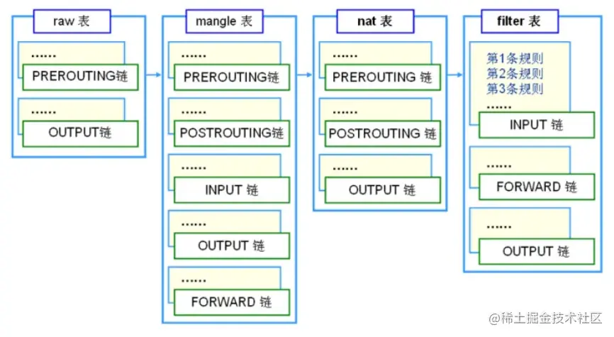 mangle表主要用于给数据包做标记,然后根据标记去操作相应的包。这个表几乎不怎么用,除非你想成为一个高级网络工程师,否则就不需要太关注。