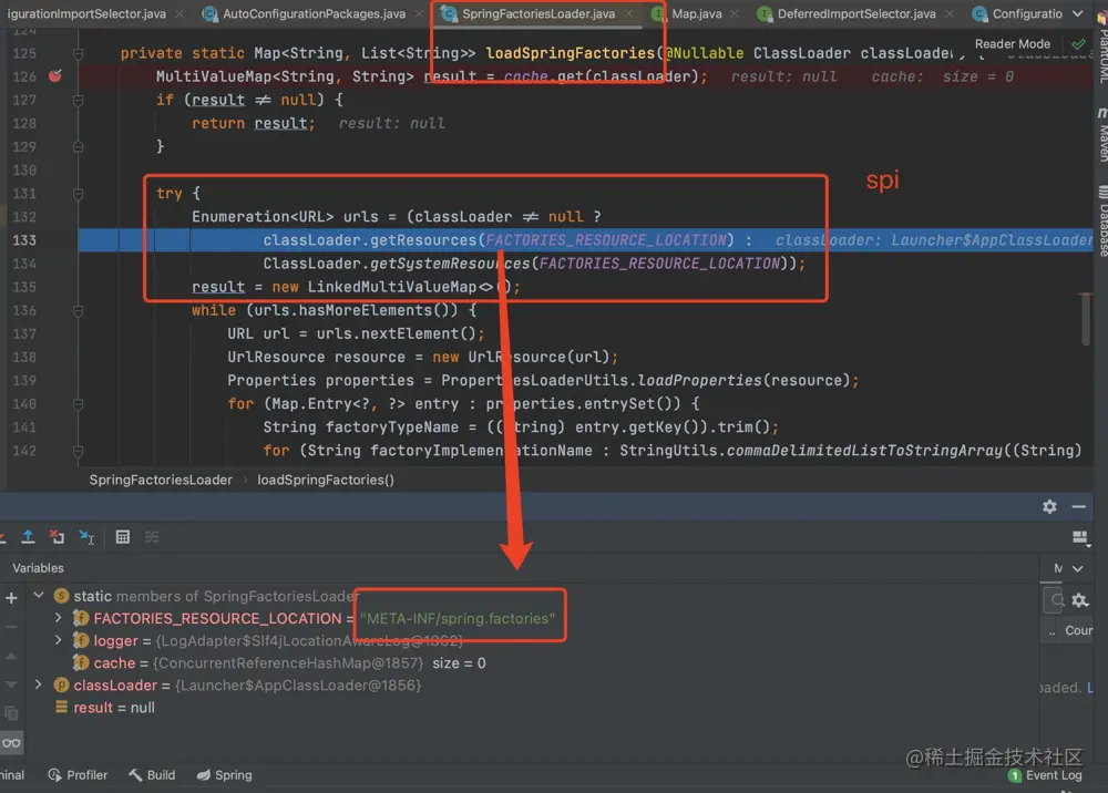 SpringFactoriesLoader.loadFactoryNames()会调用#loadSpringFactories()方法: