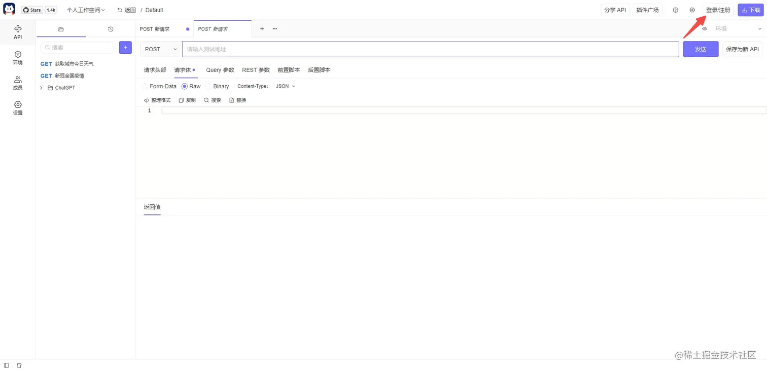 访问 Postcat.com,直接使用github 账号登录或者注册: