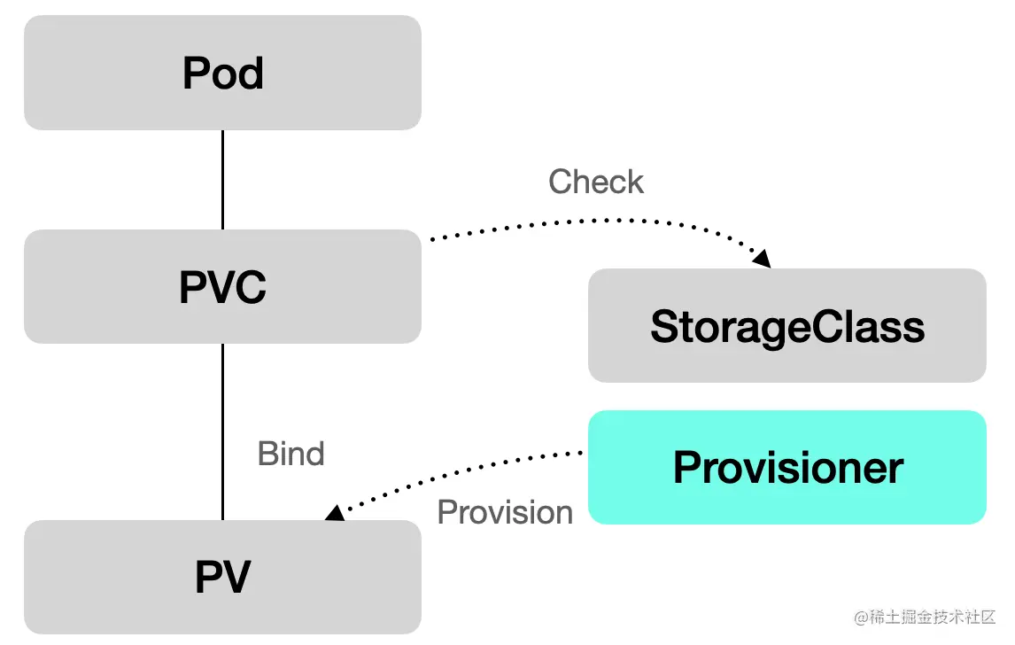 Pod、PVC、PV、StorageClass的关系图可以解释如下:
