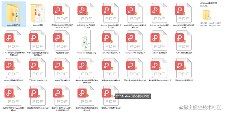 通过以上步骤,我们可以实现一个简单的自定义 View,然后根据具体的需求来进行扩展和优化。同时,我们需要注意性能和用户体验,例如避免过度绘制、优化布局等等。更多相关的自定义view技术深入学习或者Android进阶技术;可参考传送直达↓↓↓ :link.juejin.cn/?target=htt…里面记录30 多个Android相关的技术板块,点击查看详细类目获取相关内容。