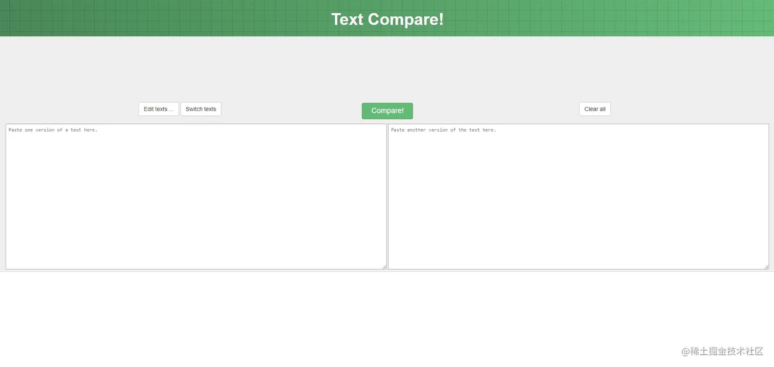 TextCompare是一个在线文本比较工具,可以帮助用户比较两个文本文件或文本块之间的差异。TextCompare支持多种比较算法,例如基于行的比较、基于字符的比较、基于单词的比较等,用户可以根据自己的需求选择不同的比较算法。 TextCompare对于需要比较文本文件或文本块之间差异的用户非常有用,例如程序员、作家、翻译等。