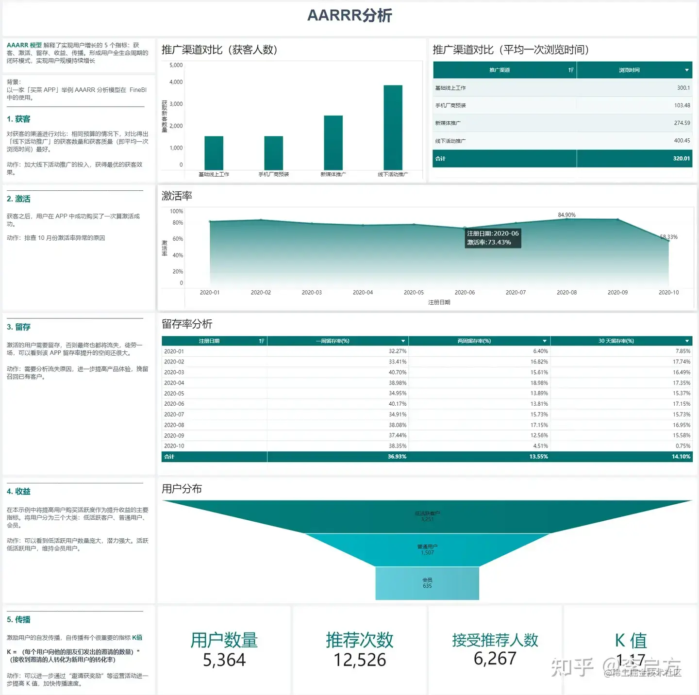 通过实现用户增长的 5 个指标:获客、激活、留存、收益、传播,追踪用户运营过程中流失的情况,形成从获客到传播推荐整个用户全生命周期的闭环模式,不断扩大用户规模,实现持续增长。