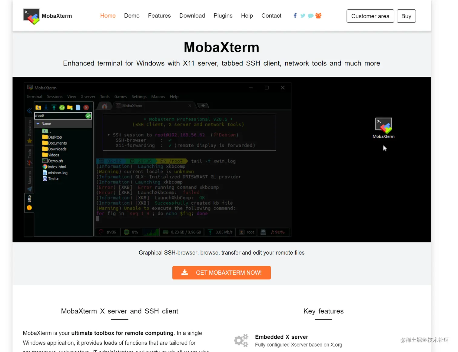 MobaXterm 是一款增强型终端、X 服务器和 Unix 命令集(GNU/ Cygwin)工具箱,支持SSH连接,支持FTP、串口等协议。