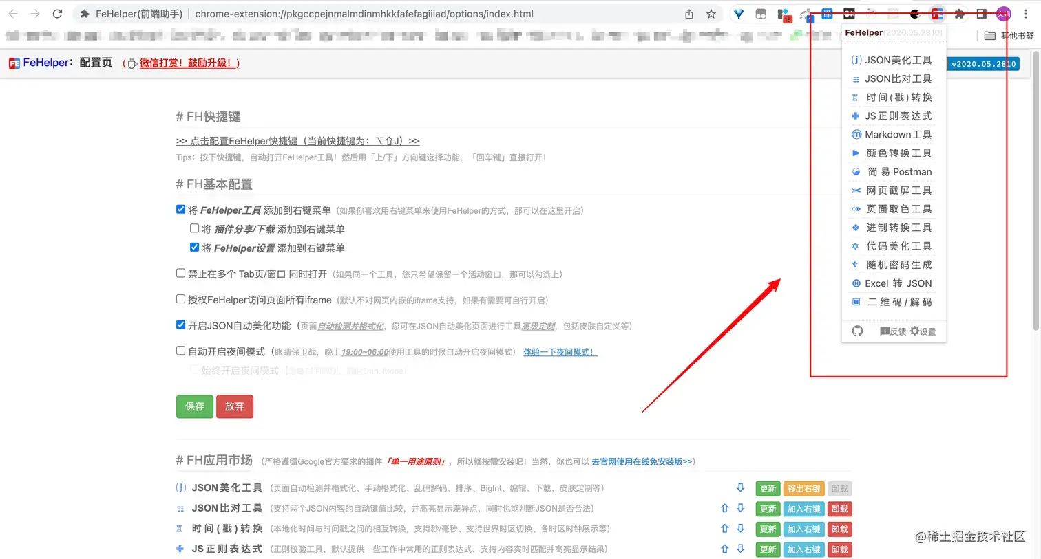 FeHelper插件支持Chrome、Firefox、MS-Edge浏览器,内部工具集持续增加,目前包括 JSON自动/手动格式化、JSON内容比对、代码美化与压缩、信息编解码转换、二维码生成与解码、图片Base64编解码转换、Markdown、 网页油猴、网页取色器、脑图(Xmind)等贴心工具。甚至在目前新版本的FeHelper中,还集成了FH开发者工具。