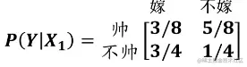 [X1P]=[ 帅 2/3 不帅 1/3][X2P]=[ 好 1/2 不好 1/3 非常好 1/6][X3P]=[ 矮 7/12 高 1/4 中 1/6][X4P]=[ 上进 2/3 不上进 1/3][YP]=[ 嫁 1/2 不嫁 1/2]