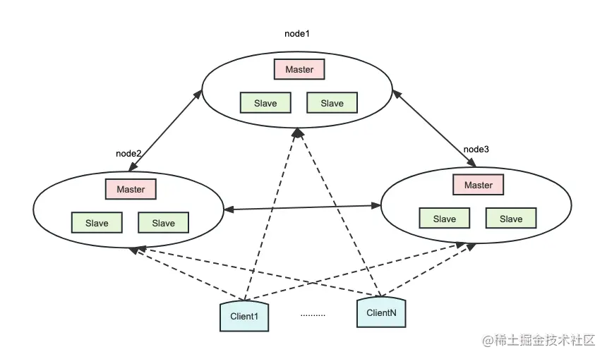 3.主从和哨兵:Redis也内置了高可用机制,支持N个master节点,每个master节点都可以挂载多个slave节点,当master节点挂掉时,集群会提升它的某个slave节点作为新的master节点。