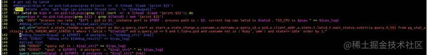 日志里边记录了cpu占用高的语句,例如上图中select * from pg_class a, pg_class,脚本默认截取sql的前50个字符,可以对截取字符串进行修改,需要修改脚本