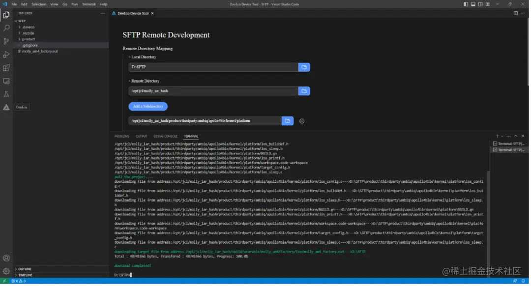2)新增SFTP功能同步远程源码,将远程环境上的待调测代码或文件同步到本地环境中进行调试,减少远程环境资源占用,提高调测效率。