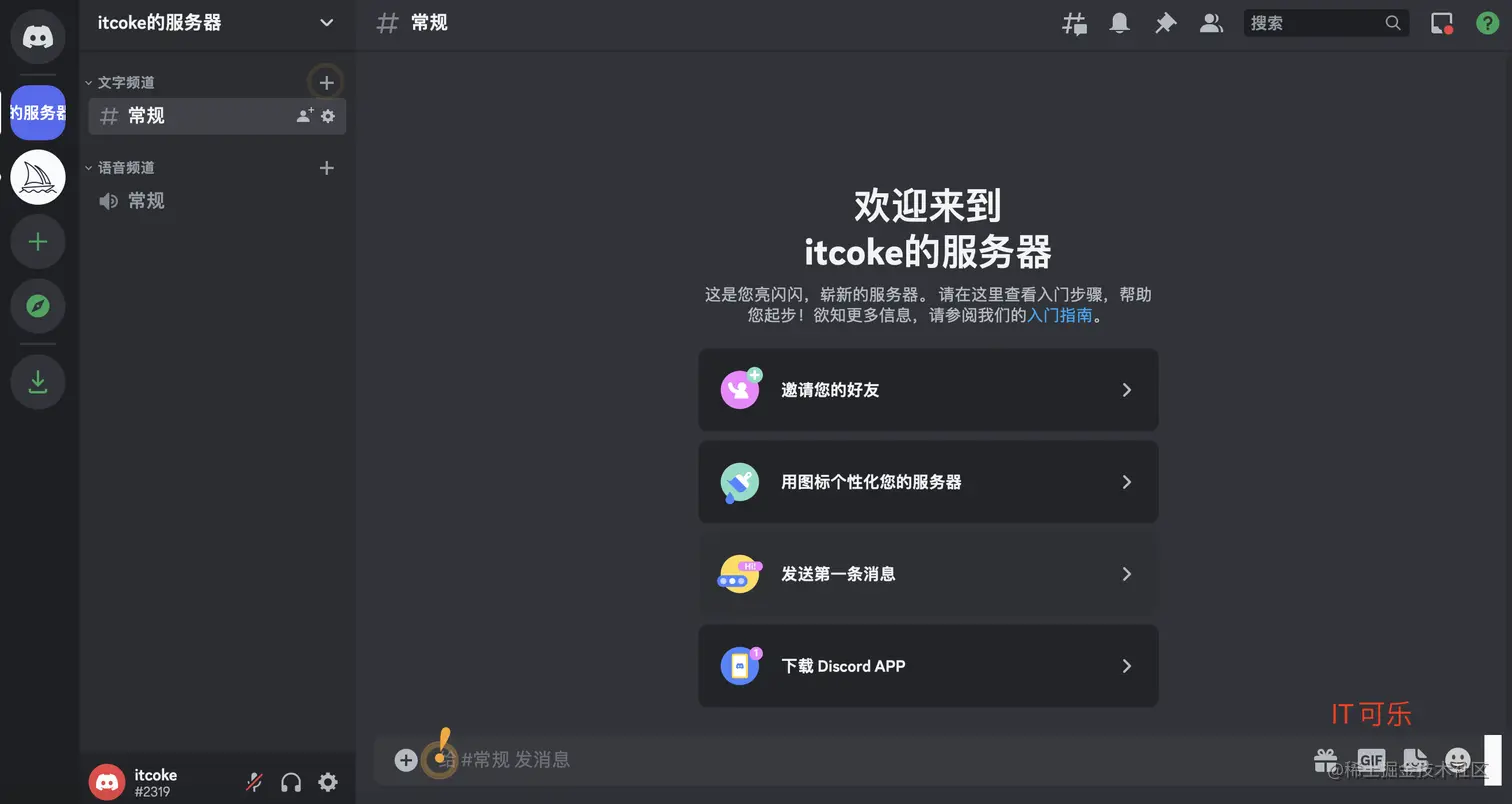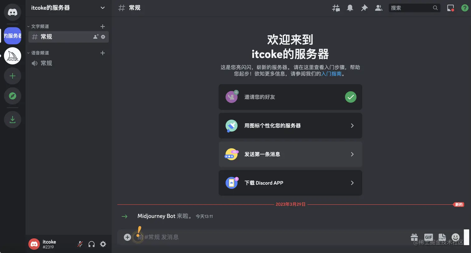 然后访问:discord.com/channels/@m…,出现如下界面: