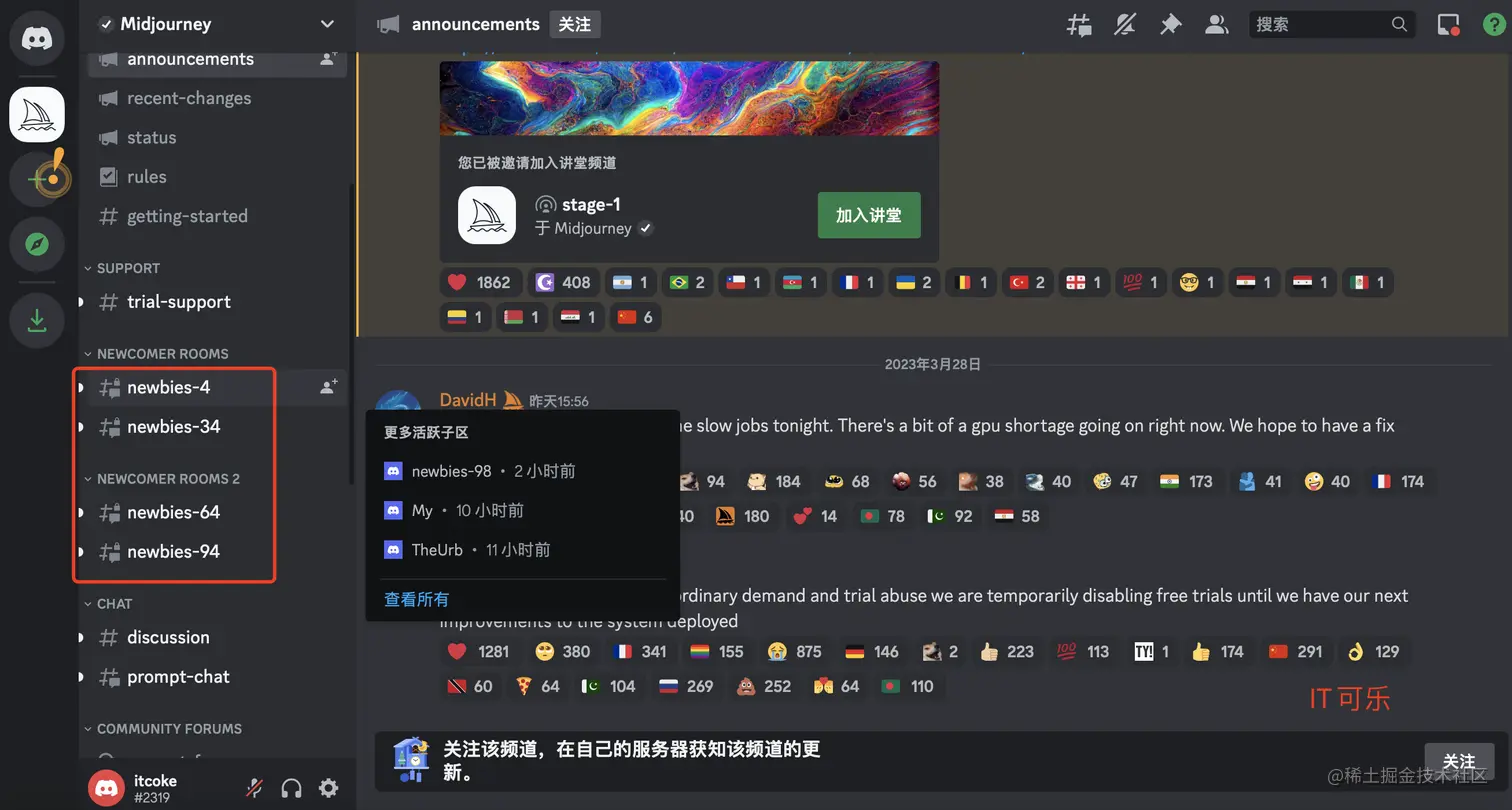 左侧滚动条,找到 newbies - XX 类似的频道,每个人后面数字不一样,点击进入: