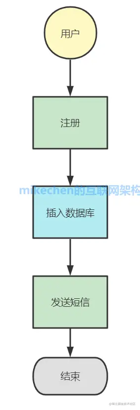 首先我们先来看看一个同步的用户注册例子,流程如下: