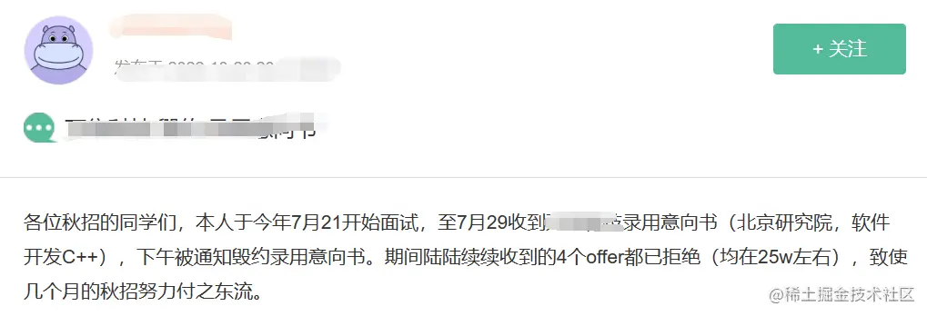 每次校招,都会刷到不少同学,接到 oc 后放弃其他公司,但最后却被放鸽子。