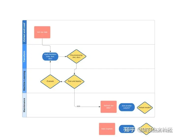 接力棒随着时间的推移而发展,需求分析和叙事是数据分析工程师和ML工程师引以为豪的容易达成共识的事情,但机器学习输出工作流的维护和验证是我们并不引以为豪的事情。发生这种情况是因为我们错过了一些关键的东西:从长远来看,我们没有统一谁应该做什么(想想:源数据变化通过转换>预处理>训练步骤级联>监控性能。难怪最终用户在 1 个月后对我们的结果耸了耸肩。
