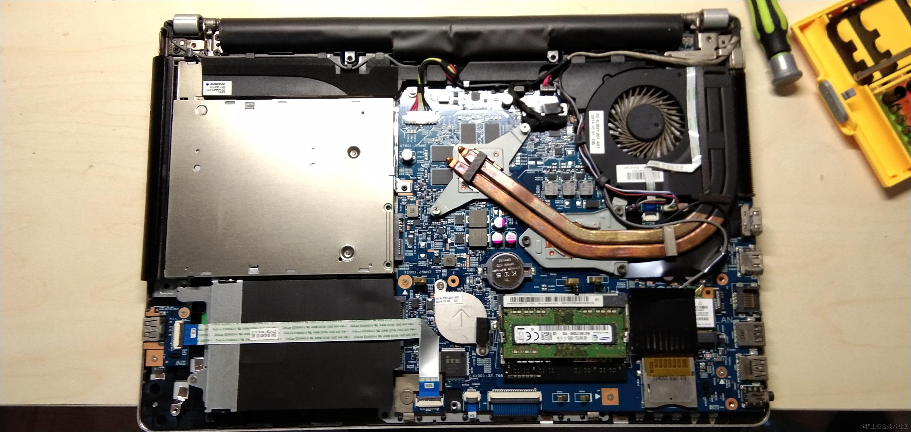 1 ,当然要把电脑关了,卸下三排螺丝,然后从光驱那块儿使劲用手打开(这块儿就看你的手术的手法了,哈哈哈),这块儿确实有点麻烦,它里面是小小的卡扣,记得光驱是和主板在一起的,别把光驱当后壳写下来,那样就悲催了。