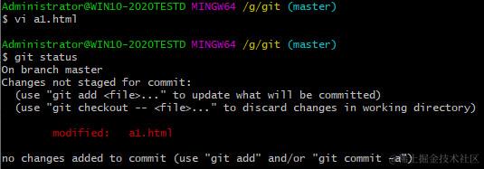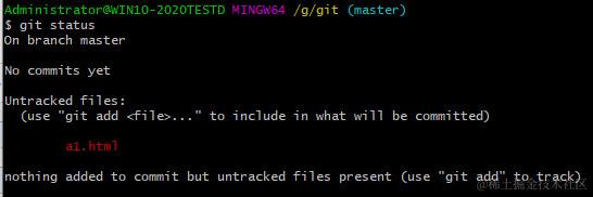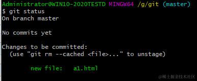 8、然后从本地添加到赞存区(git add a1.html),并查看状态