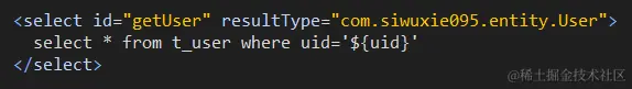 (3)表名作参数时,必须用 ${}。如:select * from ${tableName}