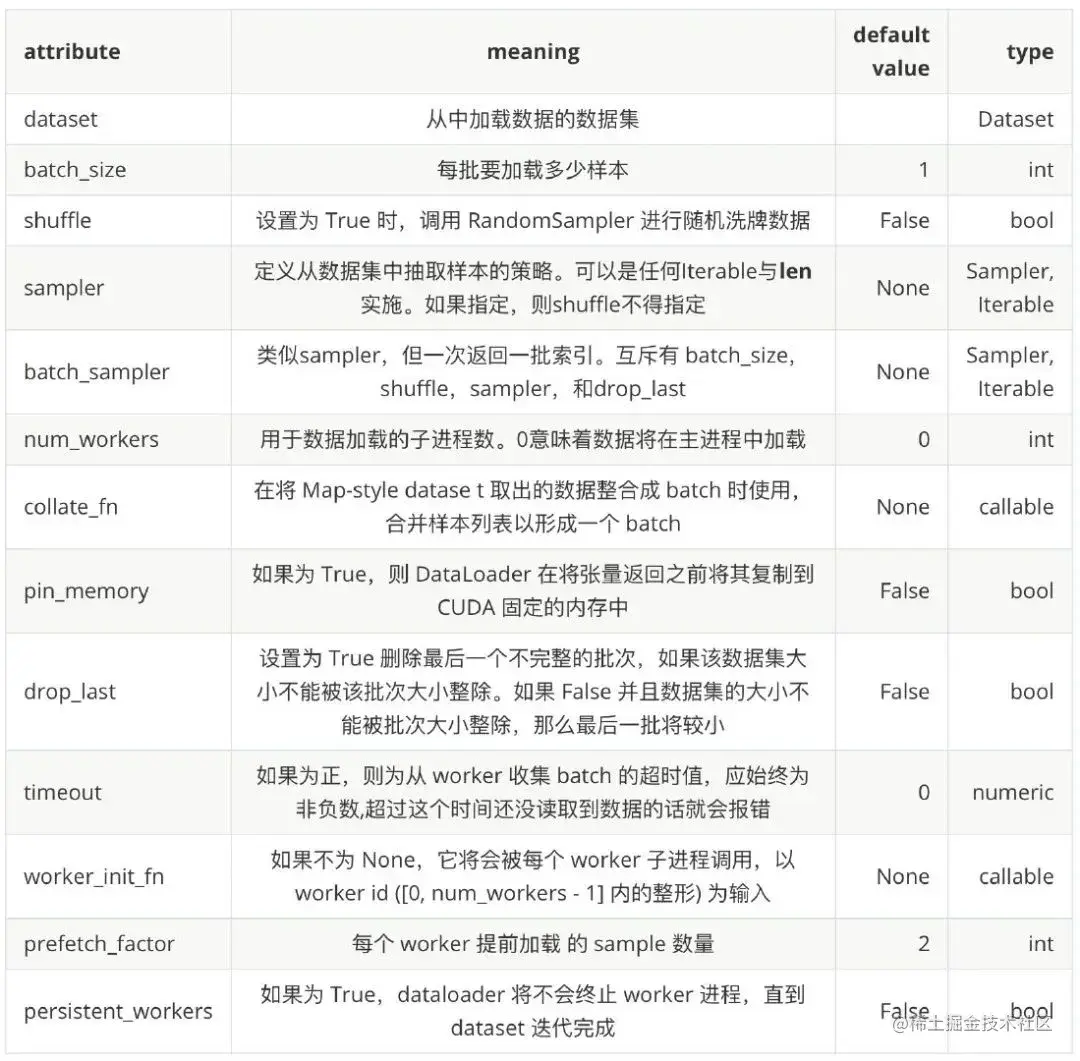 - 自定义数据加载顺序,主要涉及到的参数有 shuffle, sampler, batch_sampler, collate_fn