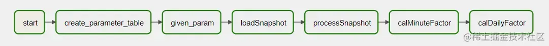 start_task >> create_parameter_table >> given_param >> loadSnapshot >> processSnapshot >> calMinuteFactor >> calDailyFactor
