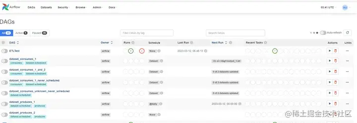 5. 输入上述创建用户名密码即可进入 Airflow 的 UI 界面,如下所示: