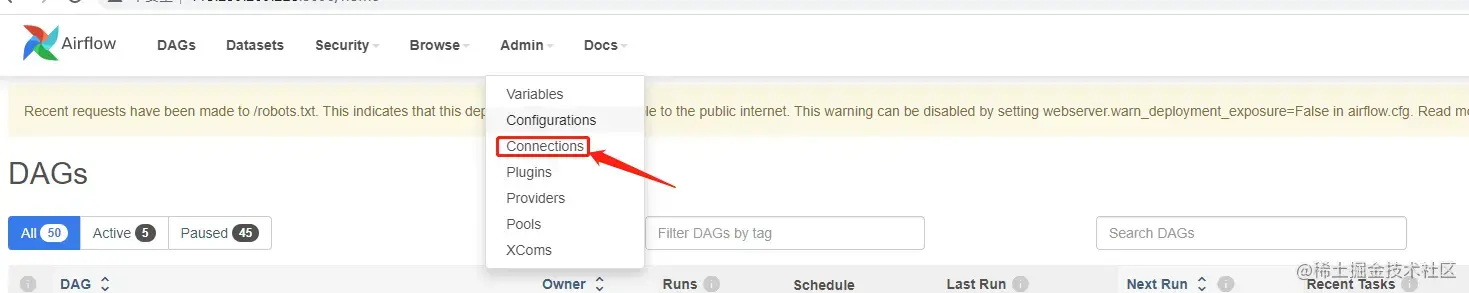 4. 启动成功后,浏览器中登陆 Airflow 的 web 界面: