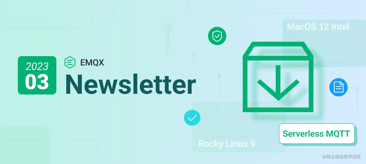 3 月,EMQX 开源版发布了 v5.0.19、v5.0.20 以及 v5.0.21 三个版本,提供 Rocky Linux 9 以及 MacOS 12 Intel 平台安装包。企业版发布了 v4.4.15 以及 v4.4.16 版本,提供了 Apache IoTDB 支持、HStreamDB 最新版本的适配、MongoDB 6.0 支持等多个更新。除此之外,还修复了多个已知错误。