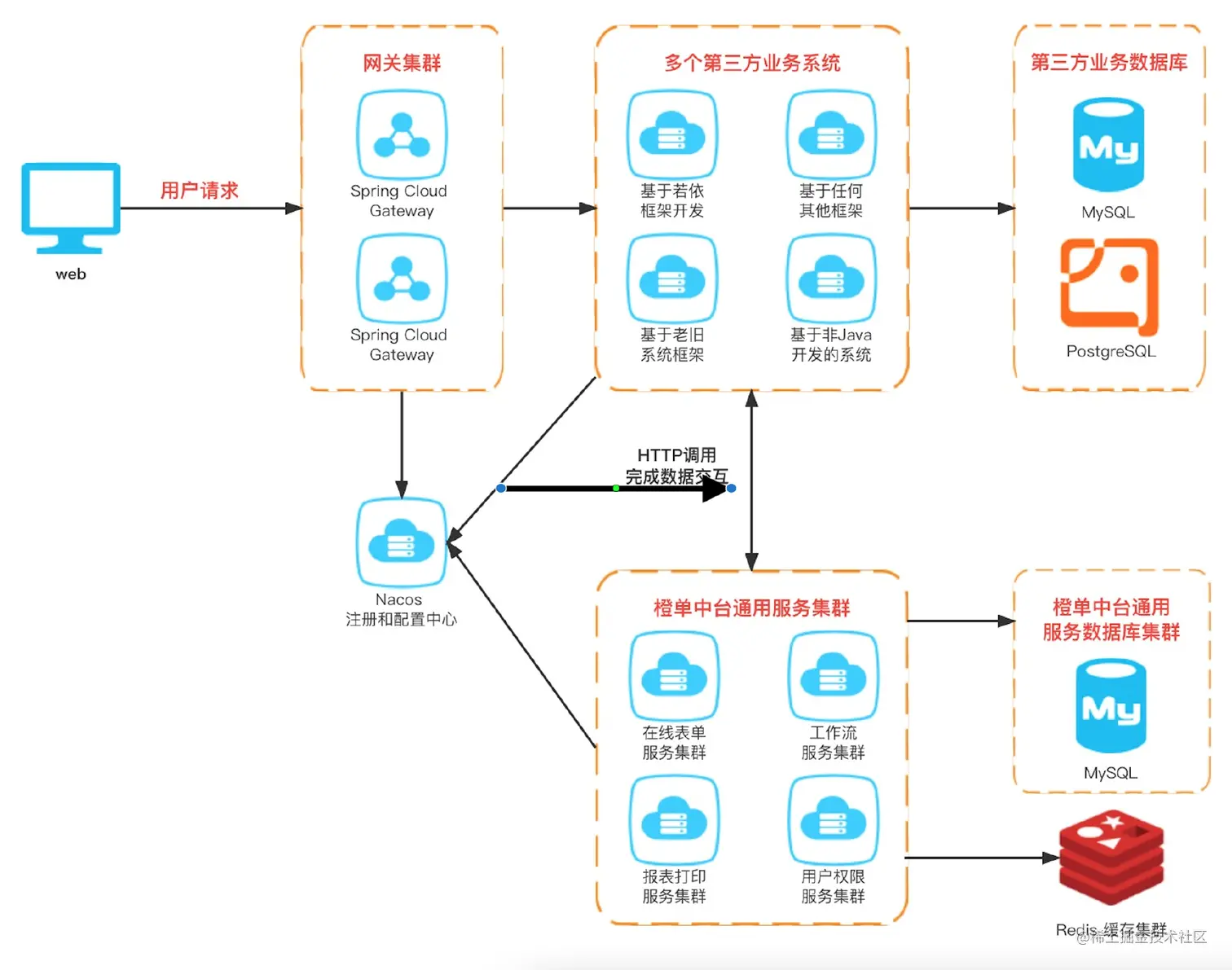 - 被接入系统后台可使用任何技术栈或不同开发语言,其与橙单服务之间采用标准的 HTTP 接口进行通讯。