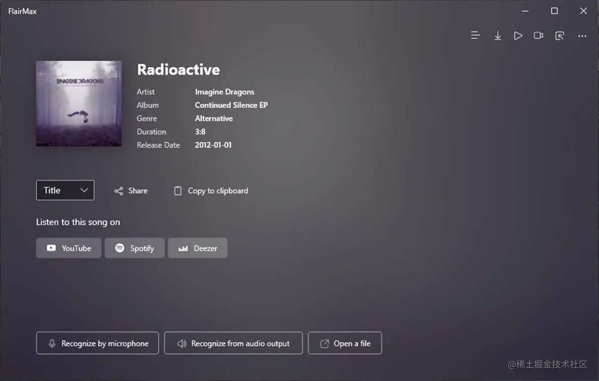 FlairMax是一款听歌识曲应用,可以识别正在播放的歌曲,并提供相关信息和链接,让你不再错过任何一首好听的歌。FlairMax还支持Mica视觉效果,让你的应用界面更加透明和美观。