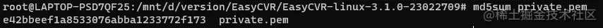 7)将此版本包重新解压后,计算private.pem的MD5值与以上pem文件并不一致;
