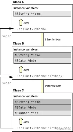 - When designing the initializers of your class, keep in mind that designated initializers are chained to each other through messages to super; whereas other initializers are chained to the designated initializer of their class through messages to self.