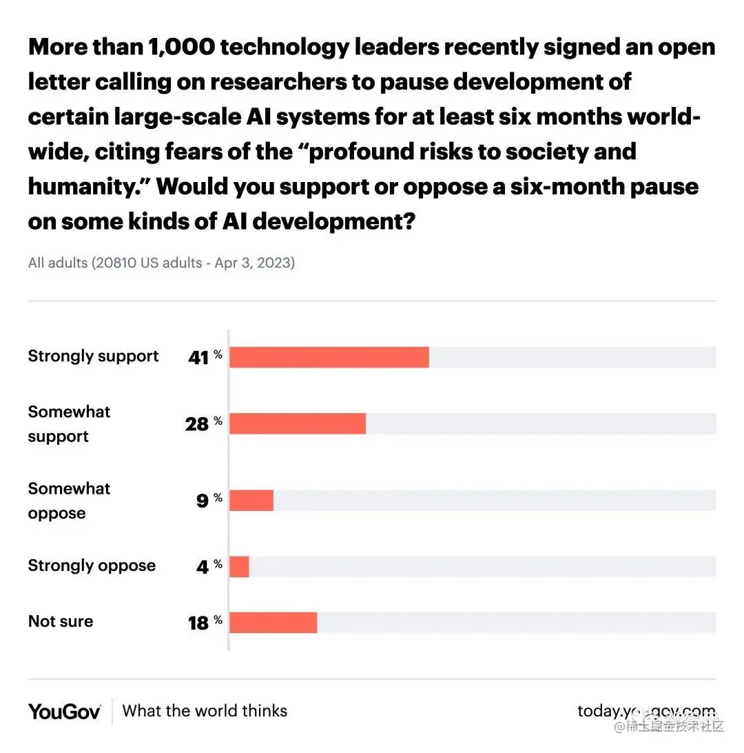 根据一项调查,69% 的美国成年人强烈支持或在一定程度上支持暂停开发六个月,但也有人认为这似乎只是徒劳。