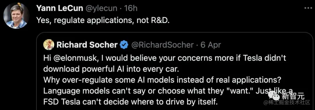 LeCun 转发了该网友的推文,表示同意:「没错,应该去规范应用,而不是研发。」